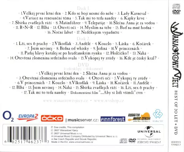 Wanastowi Vjecy: Best Of 20 Let + DVD versión en 2CD/DVD en estándar edición. Esta edición en concreto se lanzó en República Checa y Eslovaquia en la editorial Universal Music Group el día 22. octubre 2007. Álbum abarca todos los géneros Rock, Pop Rock y Soft Rock.