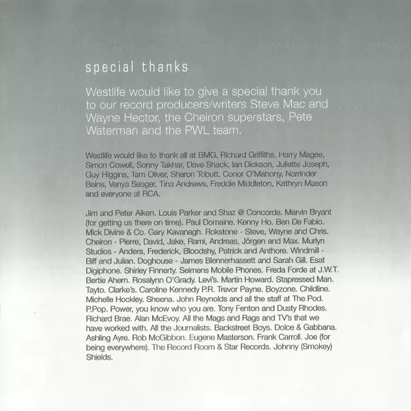 Westlife: Westlife versión en CD en estándar edición. Esta edición en concreto se lanzó en Europa en la editorial RCA en colaboración con BMG el día 29. abril 2002. Álbum abarca todos los géneros Pop, Balad y Europop. Sonopress.