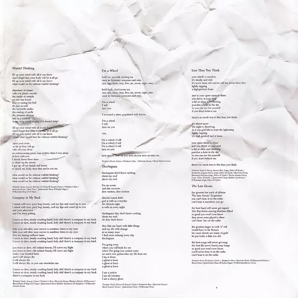 Acoustic Guitar, Loops, Electronics [Filters], Synthesizer [Synths] John Stirratt, LeRoy Bach | Drums, Dulcimer [Hammered Dulcimer], Loops, Electronics [Filters], Synthesizer [Synths] Glenn Kotche | Loops, Electronics [Filters], Synthesizer [Synths] Jim O'Rourke | Synthesizer [Serge Modular Synthesizer] Mikael Jorgensen | Vocals, Acoustic Bass [6 String Acoustic Bass], Loops, Electronics [Filters], Synthesizer [Synths] Jeff Tweedy | Written-By Glenn Kotche, Jeff Tweedy, Jim O'Rourke, John Stirratt, LeRoy Bach, Mikael Jorgensen