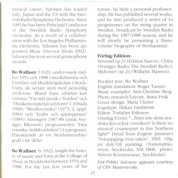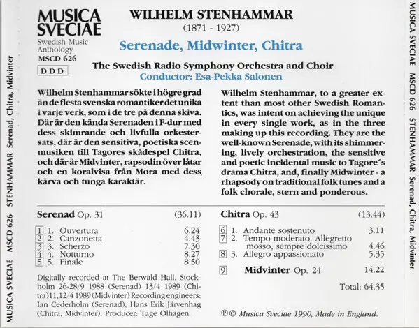 | Artista | Esa-Pekka Salonen | Sveriges Radios Symfoniorkester | Wilhelm Stenhammar |