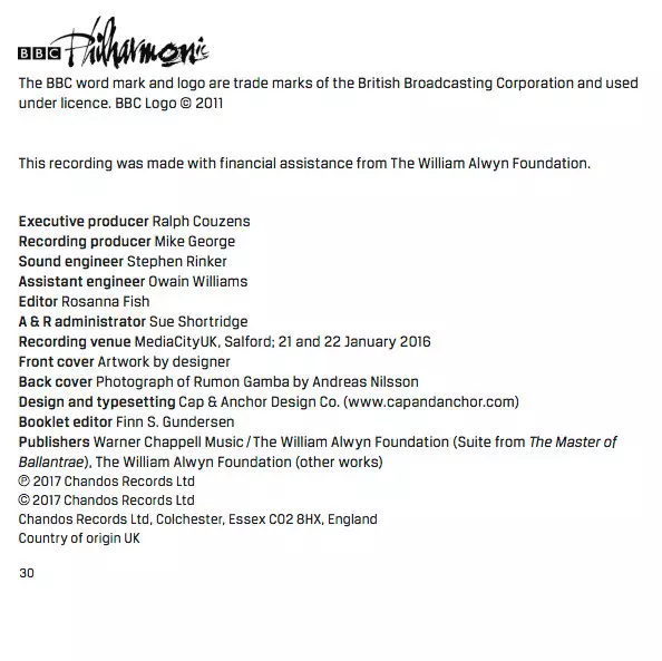 | Artista | BBC Philharmonic | Rumon Gamba | William Alwyn |