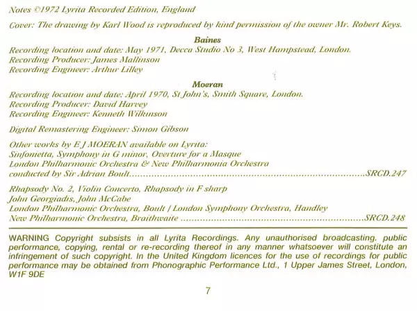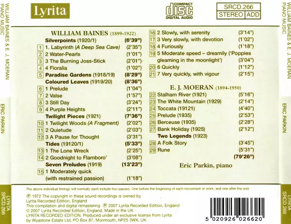 | Artista | Ernest John Moeran | Eric Parkin | William Baines |