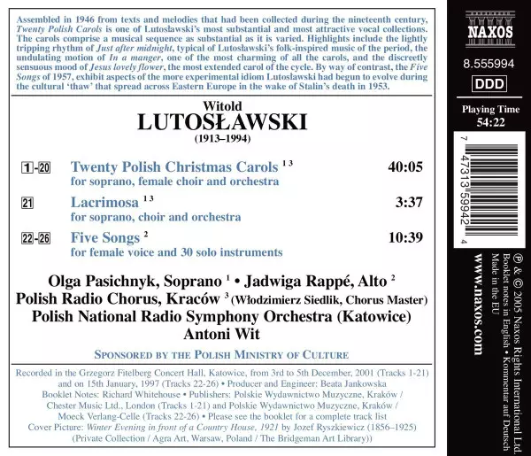 | Título | Twenty Polish Christmas Carols • Lacrimosa • Five Songs |
