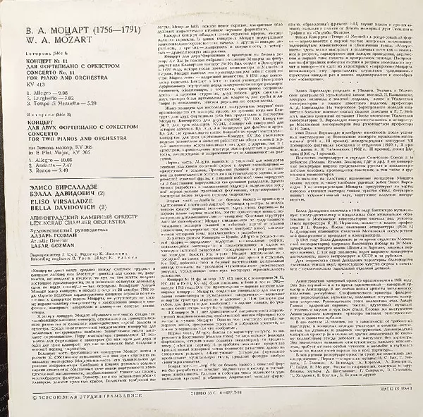 | Artista | Wolfgang Amadeus Mozart | Bella Davidovich | Eliso Virsaladze |