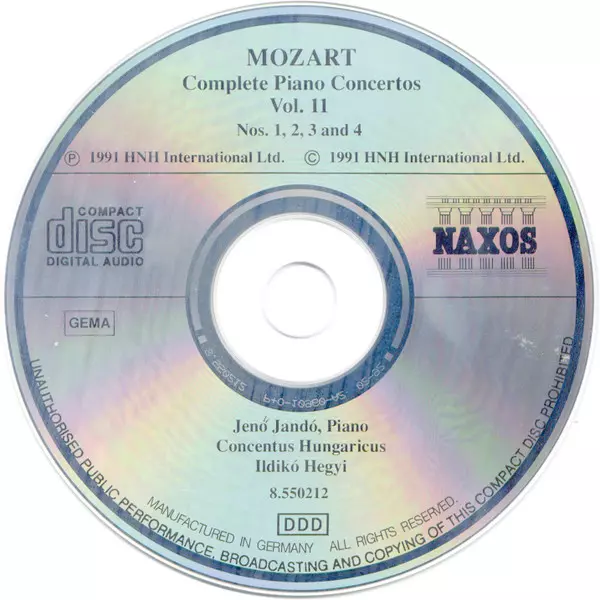 | Artista | Wolfgang Amadeus Mozart | Jenö Jandó | Concentus Hungaricus | Ildikó Hegyi |