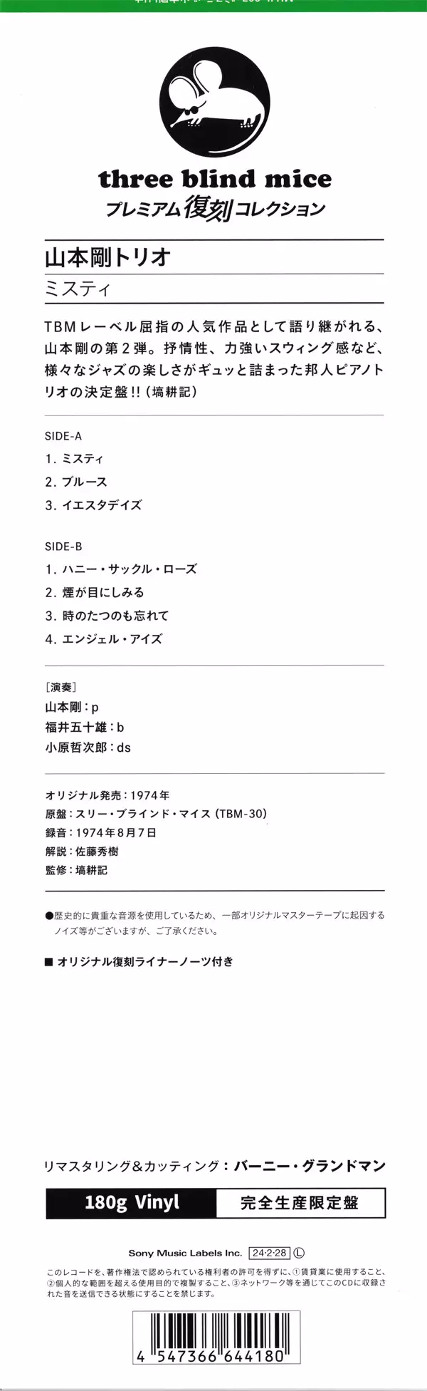 | Más información en | Limited Edition Japan 180g Remastered (Three Blind Mice) |