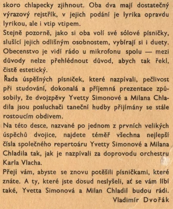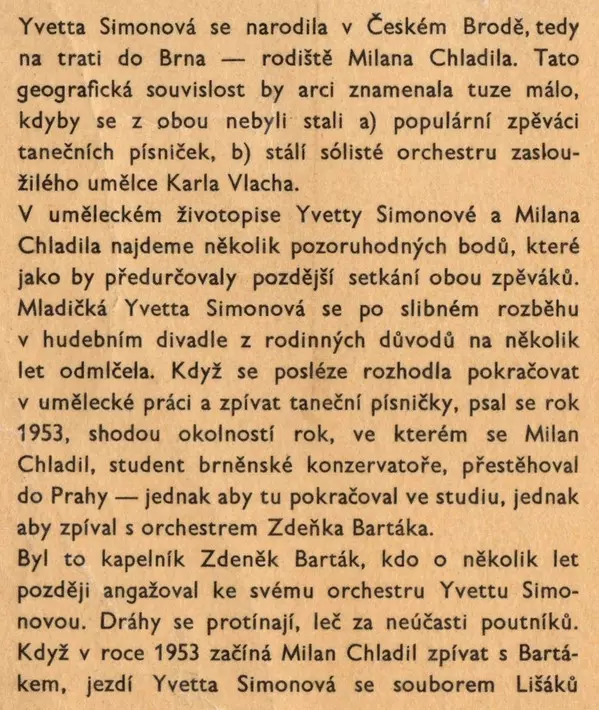 | Artista | Milan Chladil | Yvetta Simonová |
