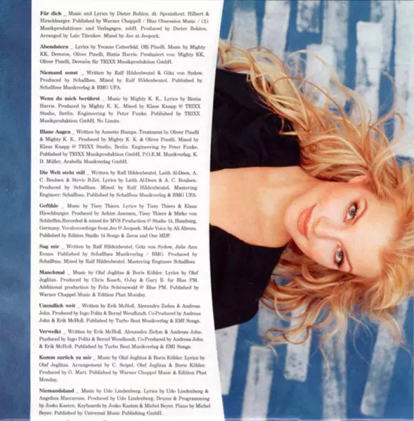 Arranged By Lalo Titenkov | Choir Anya Mahnken, Billy King (2), Christoph Leis-Bendorff, Marion Schwaiger | Guitar Jörg Sander | Lyrics By, Music By, Producer Dieter Bohlen | Mixed By Jeo