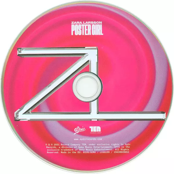Zara Larsson: Poster Girl DLX versión en CD en deluxe edición. Esta edición en concreto se lanzó en Europa en la editorial Epic en colaboración con TEN Music Group el día 12. marzo 2021.