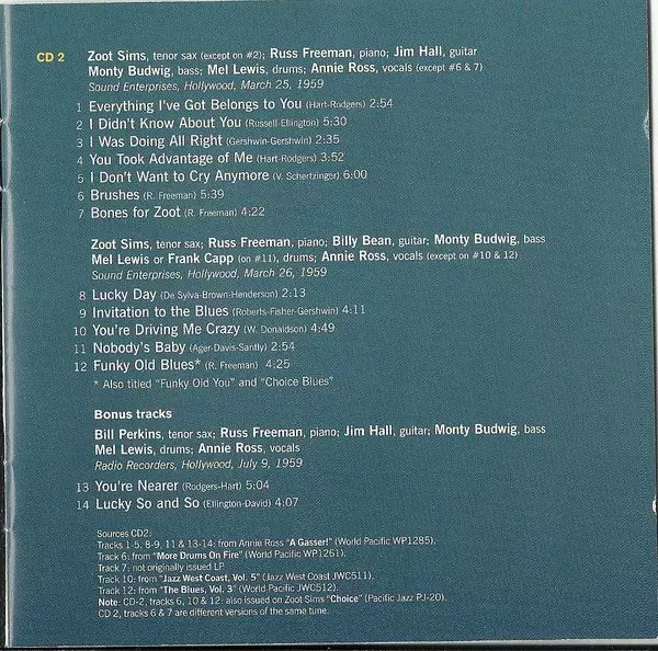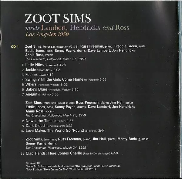 | Artista | Zoot Sims | Lambert, Hendricks & Ross |