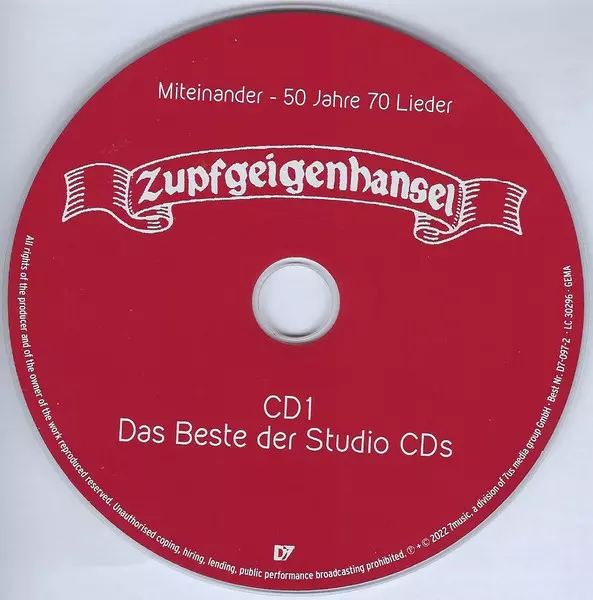 Zupfgeigenhansel: Miteinander - 50 Jahre 70 Lieder versión en 3CD en estándar edición. Esta edición en concreto se lanzó en Alemania en la editorial D7 el día 29. julio 2022. Álbum abarca todos los géneros Rock, Folk, World, & Country y Folk Rock.