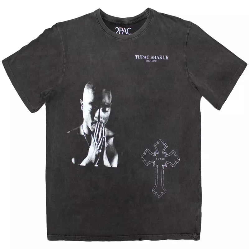 Tupac Unisex Stone Wash T-shirt: Photo Cross (small) S
